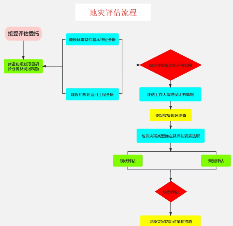 2.分析论证工程建设区和规划区各种地质灾害的危险性,进行现状评估、预测评估和综合评估。